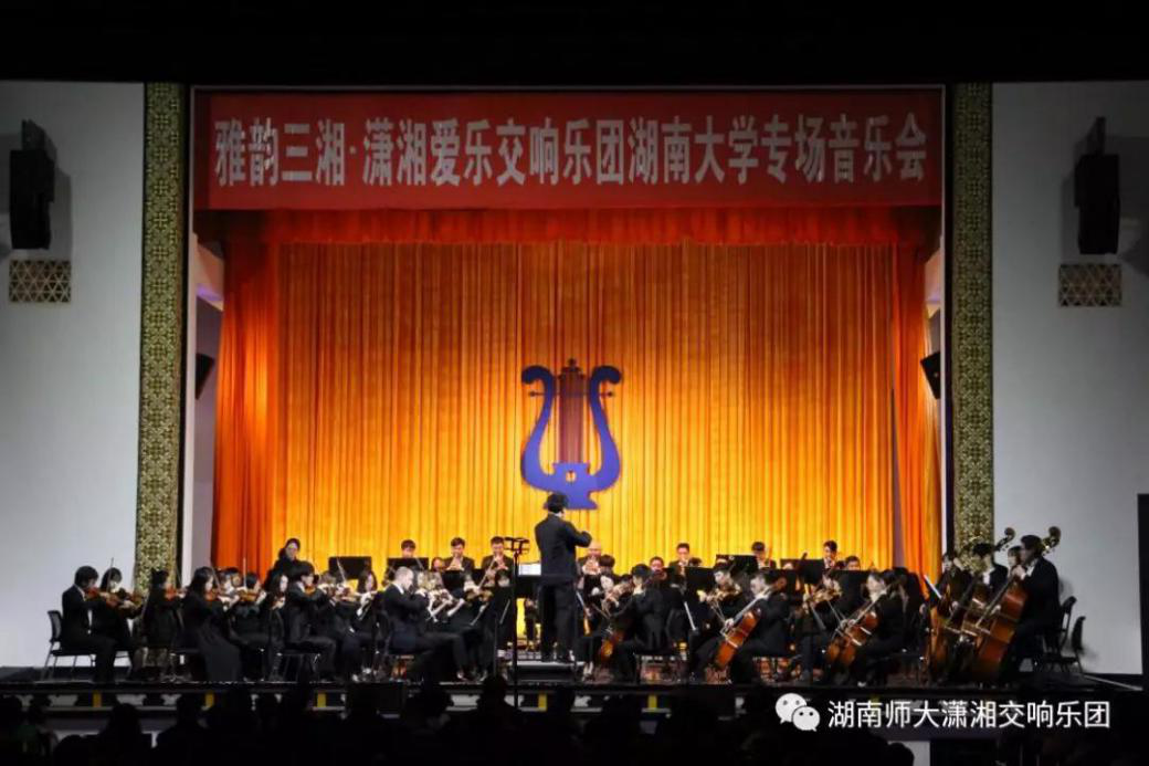 (通讯员 段淤东)11月14日晚yl23455永利潇湘爱乐交响乐团“高雅艺术进校园”专场音乐会于岳麓山脚湖南大学礼堂圆满举行。yl23455永利潇湘爱乐乐团团长陈果,湖南大学艺术教育中心主任张志军,团委书记彭嘉芬,湖南大学青年教师唐德莅临音乐会。本次音乐会为湖南大学师生带来一场现场近距离的听觉冲击,受到湖大师生的一众好评。