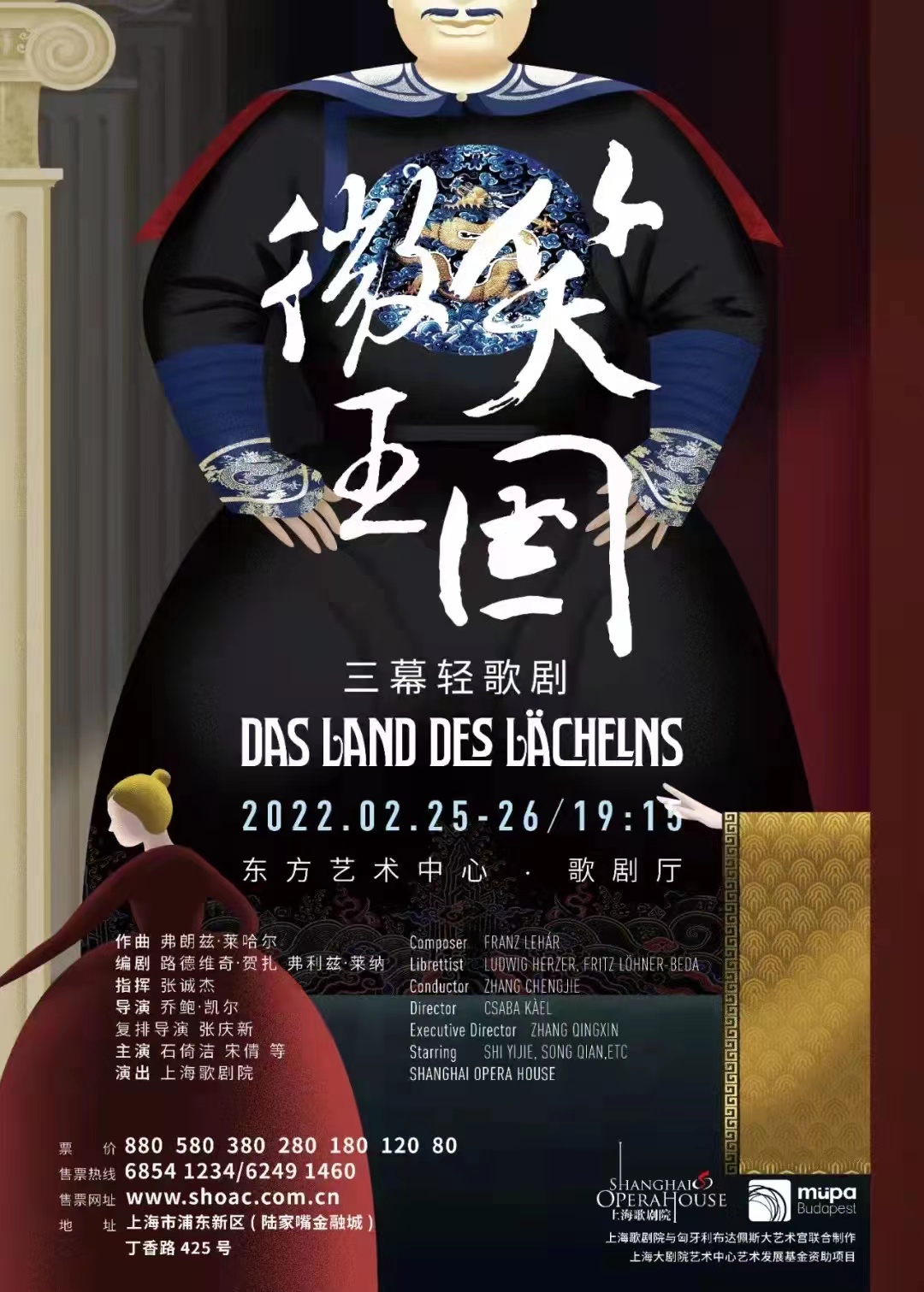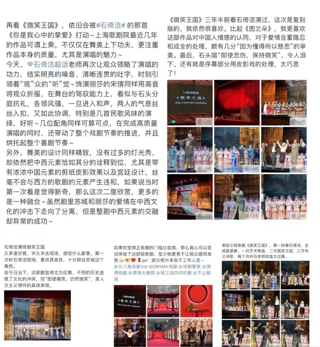 2月25-26号,由上海歌剧院献演的轻歌剧《微笑王国》在上海东方艺术中心歌剧厅连续两晚隆重上演,现场座无虚席,反响热烈。同时,布达佩斯大艺术宫也通过官网进行了全球同步直播。