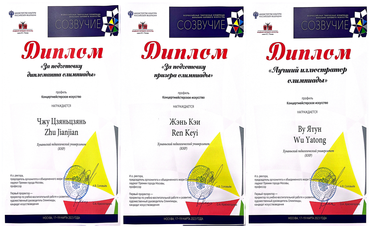 此次比赛由俄罗斯波波夫合唱艺术学院主办,波波夫合唱艺术学院成立于1991年12月,前身为1944年成立的莫斯科斯维什尼科夫合唱学校,是俄罗斯史上第一所声乐合唱艺术高等学校。本次比赛以线上远程形式举行,在朱坚坚老师和任珂漪老师的悉心指导下,我院各位参赛同学最终取得优异的成绩,为yl23455永利集团夺得了荣誉!