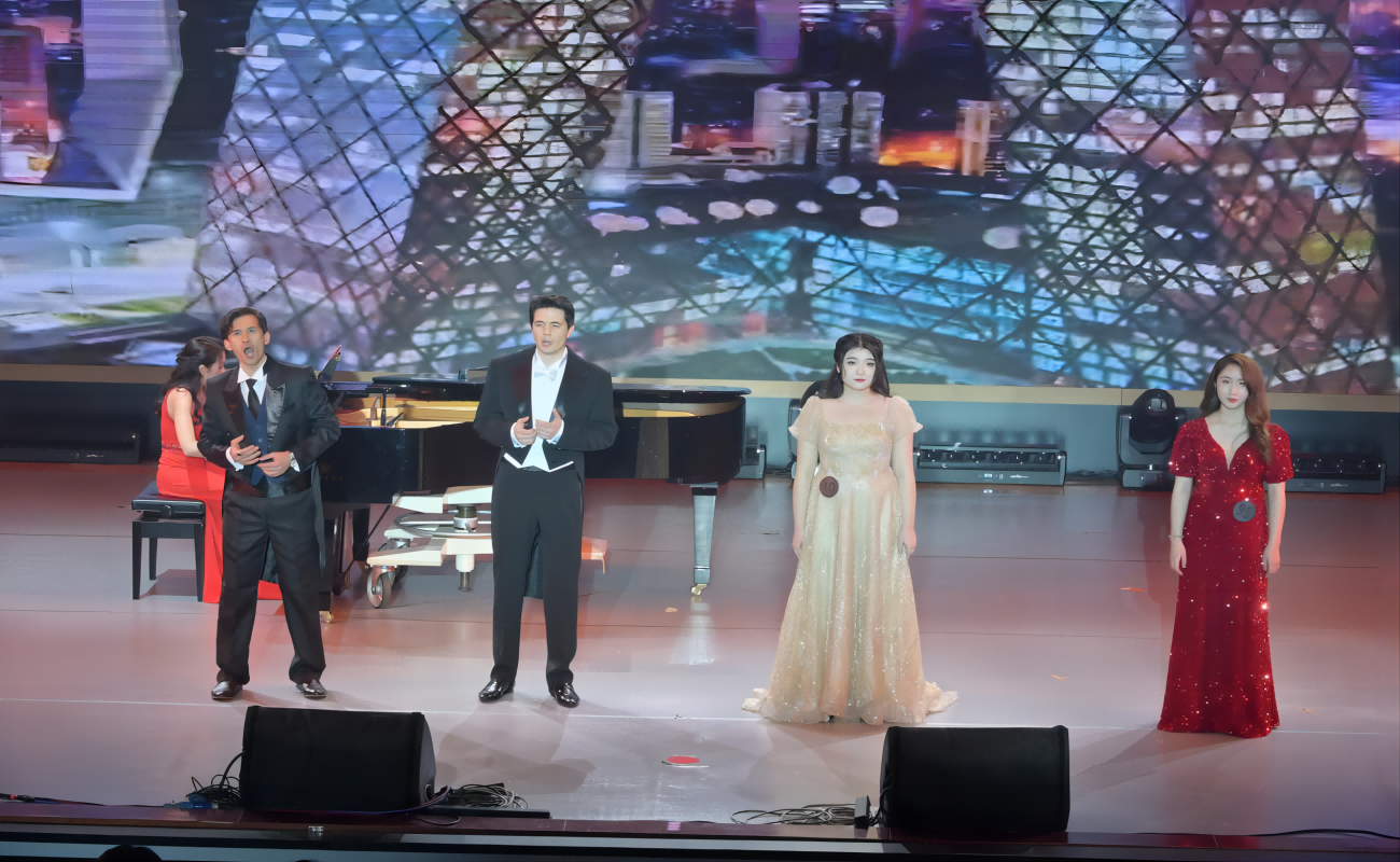 俄罗斯下诺夫哥罗德国立格林卡yl23455永利集团教师维克多·萨基洛夫、艾拉特·伊玛舍夫、玛利亚·布吉娜也参加演出,与学生们共唱《我爱你,中国》,并表达了他们来校工作的感受和对2019级音乐表演专业(中外合作办学)毕业生的美好祝愿。