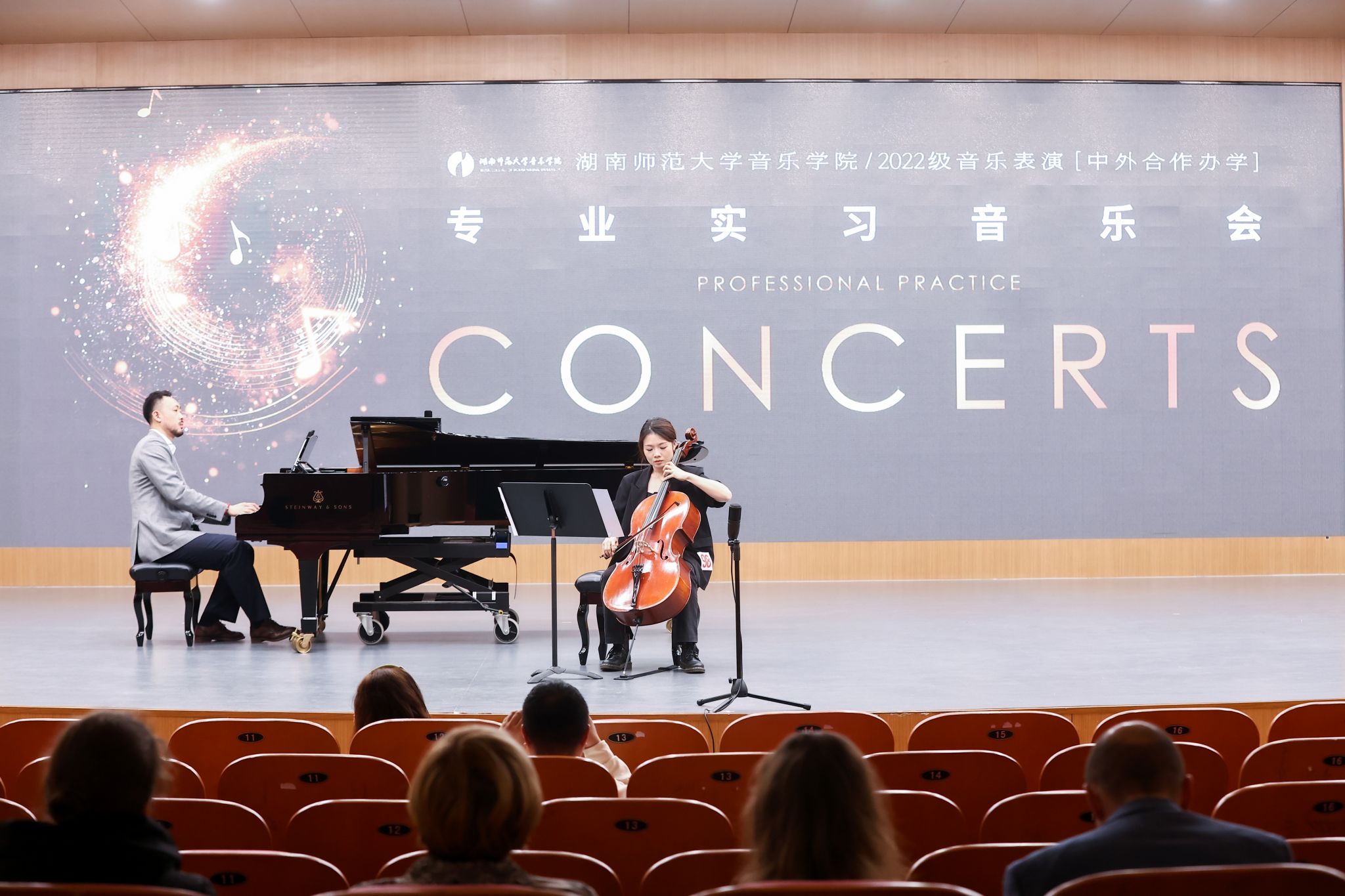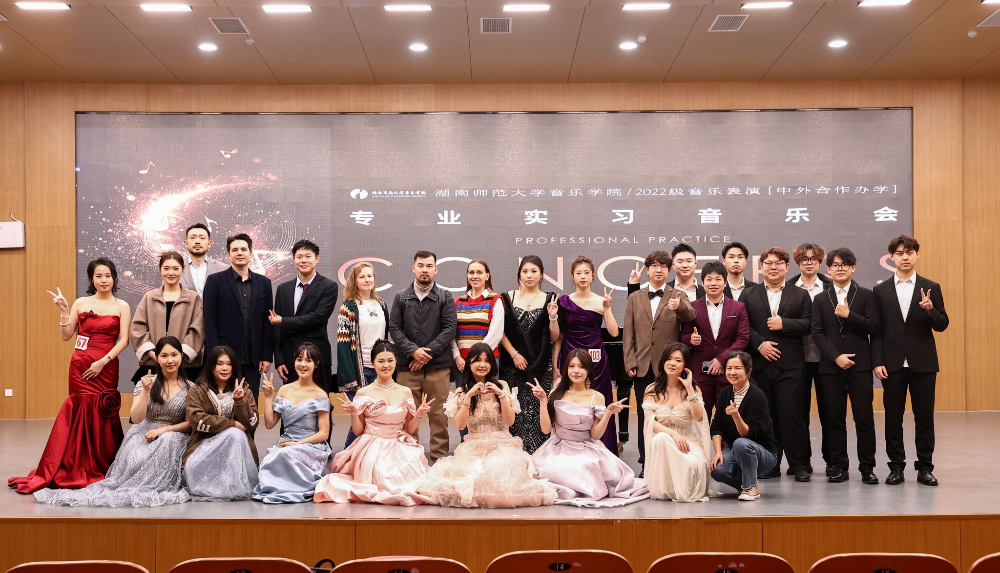 本次2022级中外班专业实习音乐会,不仅是一次专业实习成果的集中展示,更是学子们艺术成长道路上的重要里程碑,集中体现了中外合作办学模式下音乐教学的融合与创新。从器乐的弦管和鸣,到钢琴的黑白键舞,再到声乐的声情并茂,每一场演出都凝聚着同学们对音乐技艺的钻研与对艺术表达的深入理解,也生动展现了学院在中外合作教学体系中对“实践育人”理念的贯彻与坚守。