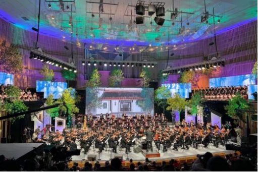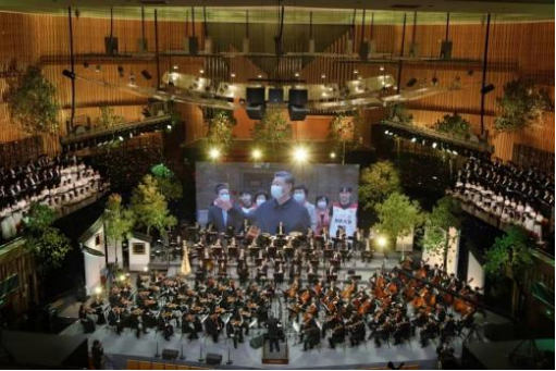 音乐会现场,伴随着光影声的配合演绎,在场听众尽情享受了一场兼具可听性、可视性、可品性的宏大音乐盛宴。在音乐的流动与叙述和光影的变幻与推进中,千年学府“实事求是”思想路线策源地的历史文化之源与红色革命实践足迹逐渐显现,新中国成立、改革开放、全面建设、新时代中华民族伟大复兴的激昂征程徐徐展开。一曲传承千年湖湘文脉,源远流长;一曲唱响百年奋斗历程,风华正茂。