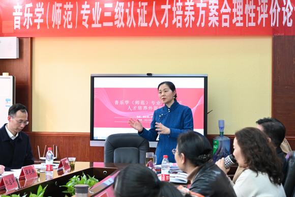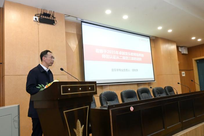 资利萍副院长作为专业负责人,以“着眼于2035年卓越音乐教师培养的师范认证从二级到三级的进阶”为题,从师范认证的背景、本专业的进阶情况、外部评价如何实施三个方面进行了主题汇报。