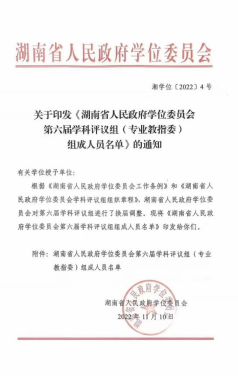 湖南省人民政府学位委员会办公室工作负责统筹管理全省学位与研究生教育工作;研究拟订学位与研究生教育政策文件;制定学位发展规划并组织实施;参与制定研究生教育发展规划;组织评审学位授予权;组织对全省学士、硕士、博士学位授予质量和研究生培养质量进行监测、评估等工作。廖勇教授、夏雄军教授、吴安宇教授此次入选,为我院进一步发挥在学科建设等领域内的引领作用提供了契机和平台,并在促进我院教学改革创新、提高培养人才质量的同时,也将进一步助力我院办学水平与社会影响力的提升。