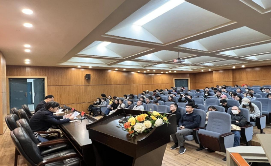 我院全体教职工、离退休党员代表和学生党员代表参加动员大会。