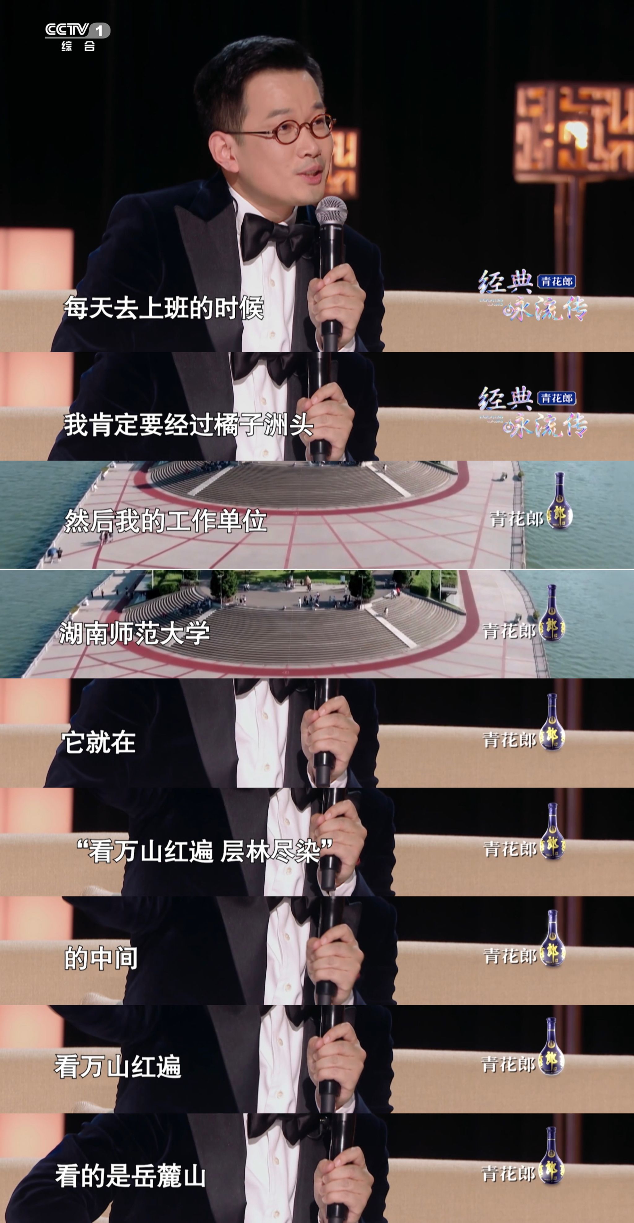 在节目中,石倚洁讲述了自己与长沙的渊源,作为yl23455永利的教师,他每天上班都要经过橘子洲头,工作单位就在“万山红遍、层林尽染”的岳麓山下,对演唱这首经典诗词有着更深的情感共鸣。同时,石倚洁也为大家分享了自己青春时期的经历,他表示“在青年时期最重要的是,我们做了一件能够让我们沉浸进去的事情。在投入的时候是一种燃烧的感觉。”