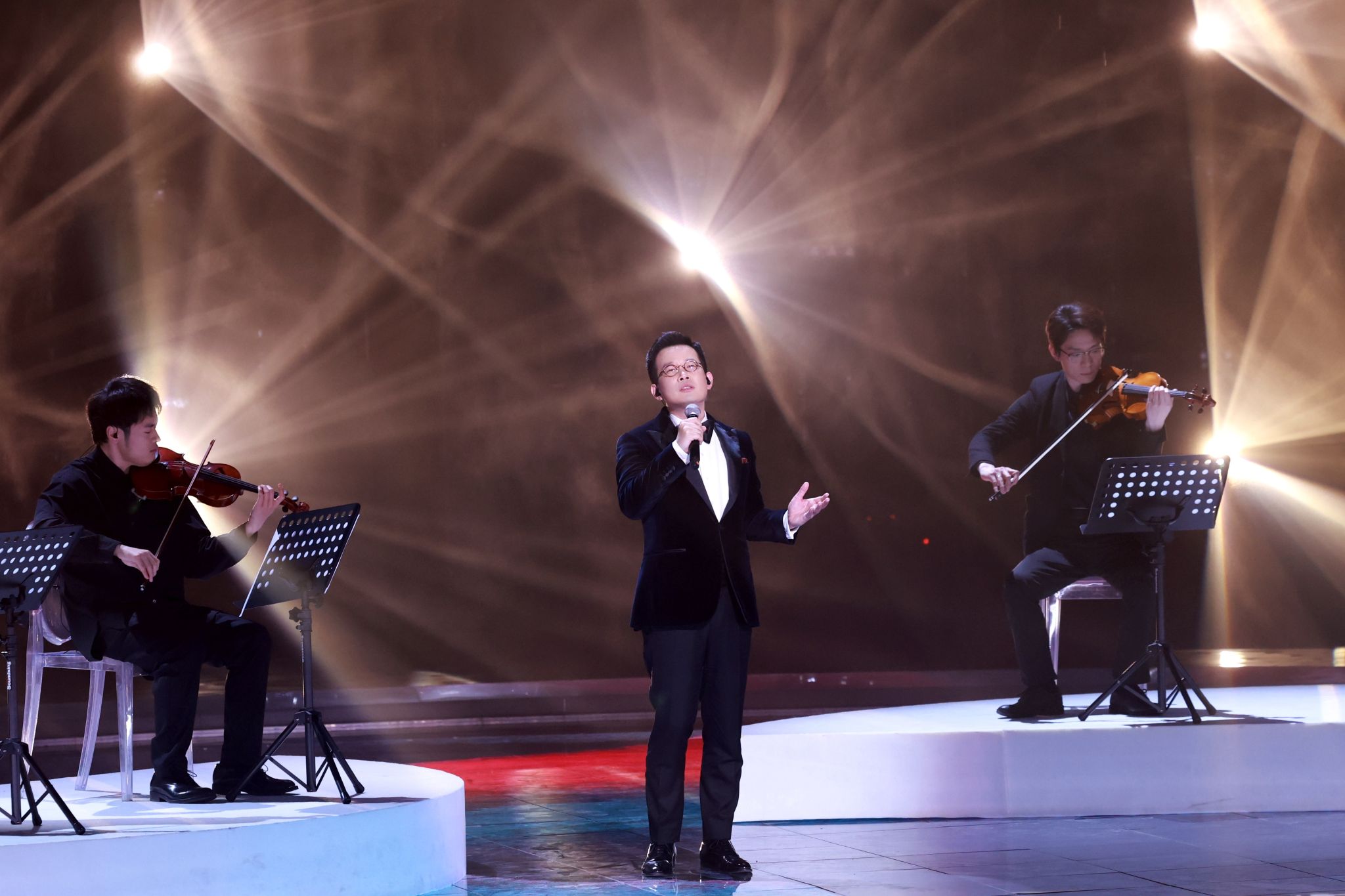 石倚洁还担任经典传唱人,用高亢优美的歌声,与弦乐四重奏一起震撼演绎了毛泽东的经典诗词《沁园春·长沙》。在唱响这首《沁园春·长沙》时,舞台暖光下的水雾零星散落,情景交融,融情于理,扑面而来的温润感,瞬间带领观众梦回1925年晚秋时节的橘子洲头,感受到伟人笔下壮美的秋景和他的青春岁月,置身于那年那时青年一代的豪情壮志之中。