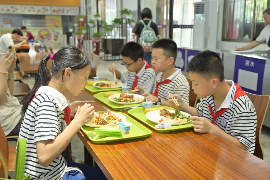 当天下午5点,yl23455永利集团30名学生党员在院门口迎来了30名来自长沙市岳麓区五星小学五年级的小朋友,他们都是新市民的子女,他们的父母都奔波奋战在这座城市的各行各业。小朋友们身穿校服、佩戴红领巾,在学生党员一对一的带领和带队老师的指挥下,井然有序地参观了学院,聆听了学生党员干部谢意有关学院的介绍并拍照留念。参观完学院,大家一起来到南院食堂就餐。“大学的食堂是这样的吗?”“这个鸡腿好大啊”“我要全部吃完”……初来乍到的小朋友对食堂充满着好奇,食堂也因为他们的到来而洋溢着欢声笑语。大家井井有条的打饭,在碗筷欢快的碰撞声中结束了大学食堂的初体验。