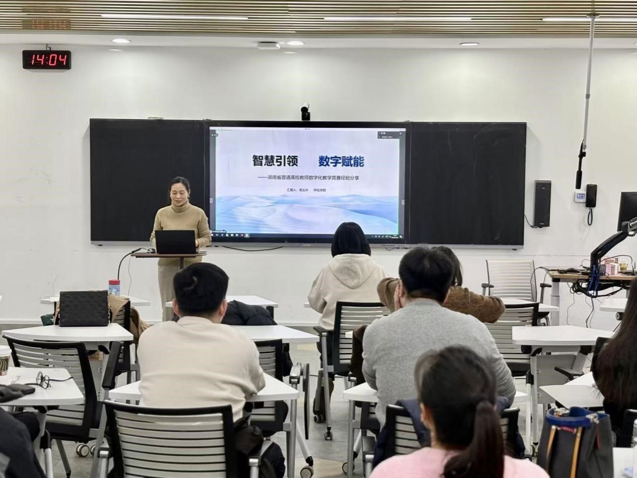怀化学院音乐与舞蹈学院青年教师、获得2023年度湖南省高校数字化教学竞赛一等奖第一名的苑文卉老师以《智慧引领数字赋能——湖南省普通高校教师数字化教学竞赛经验分享》为题从赛事解读、备赛过程、教学设计、教学打磨、个人体会等方面进行了分享,并与yl23455永利集团全体系主任和45岁以下的青年教师就教学难点痛点及其应对策略进行研讨,气氛热烈,教研效果良好。