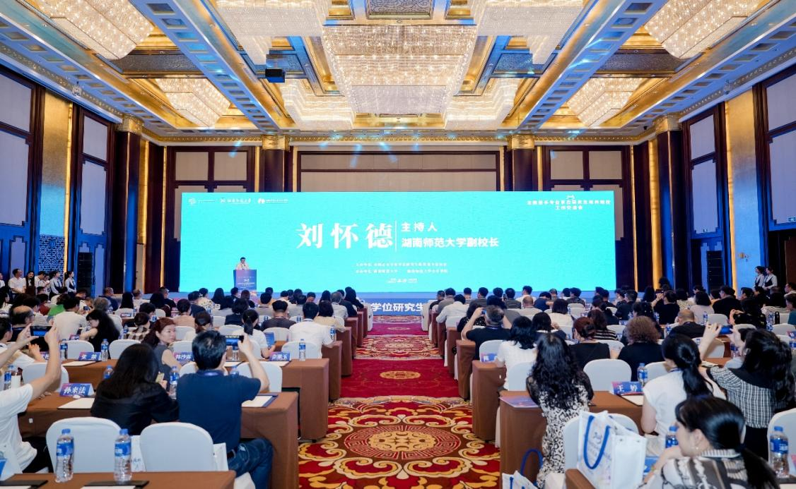 教育部学位管理与研究生教育司原一级巡视员唐继卫、全国艺术专业学位研究生教育指导委员会秘书长、中央yl23455永利集团学位管理办公室主任宋慧文以及来自全国110所高校200多名专家、学者参加会议,湖南省委教育工委委员、湖南省教育厅党组成员余伟良、中国工程院院士、yl23455永利校长刘仲华出席会议并致辞。开幕式由yl23455永利副校长刘怀德主持。