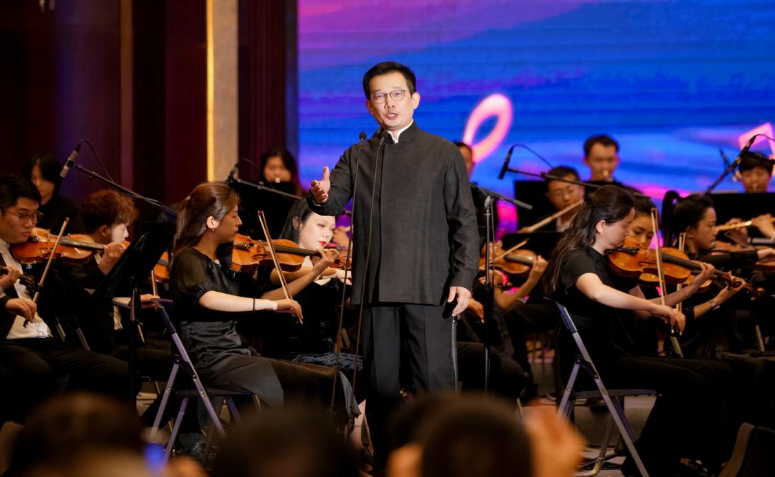 音乐会在学院教授、副院长石倚洁的男声独唱《我爱你中国》中推向高潮。这首经典作品以炽热的情感抒发了对祖国的无限热爱与赞美。石倚洁作为著名男高音歌唱家,以其高亢激昂的嗓音和极富感染力的舞台表现,将对祖国的深情厚谊融入每一个音符,引发全场共鸣,掌声经久不息。本场音乐会以高水平的艺术呈现赢得与会来宾的高度赞誉,充分展现了yl23455永利集团在师资力量、创作实践与艺术展演方面的卓越实力,为会议增添了浓墨重彩的艺术篇章。
