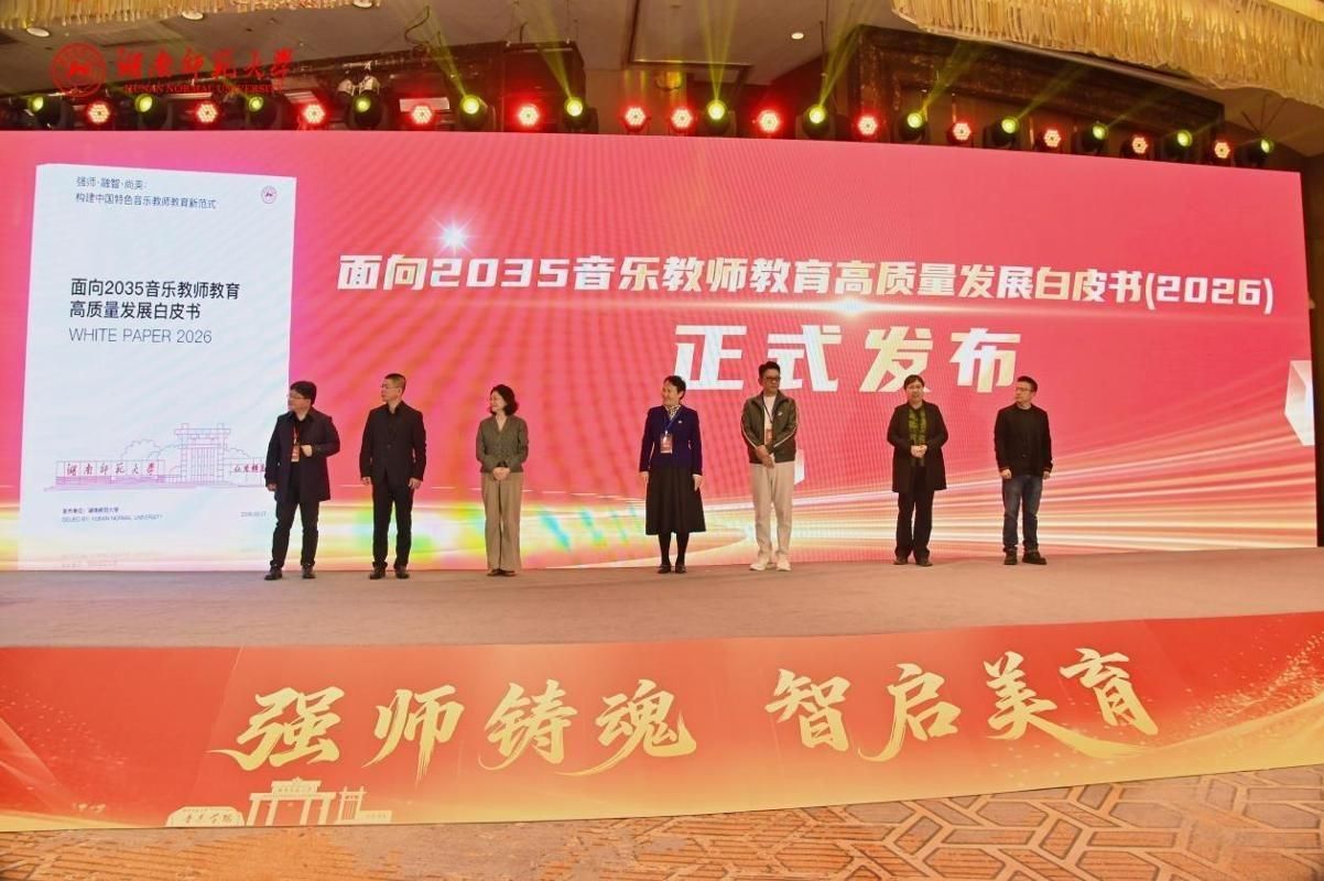 会上正式发布《面向2035的音乐教师教育高质量发展白皮书(2026)》,是国内首份系统聚焦音乐教师教育高质量发展的行业白皮书。白皮书紧扣《教育强国建设规划纲要(2024–2035年)》和人工智能时代教育变革趋势,提出“强师铸魂、融智赋能、尚美育人”三位一体核心理念,并系统构建目标、课程、教学、协同、质量五大支柱实施路径。白皮书强调:AI不是教学的点缀,而是重构美育生态的关键力量;音乐教师培养应从“技能传授”转向“文化理解+创造力培育+数字素养”融合。