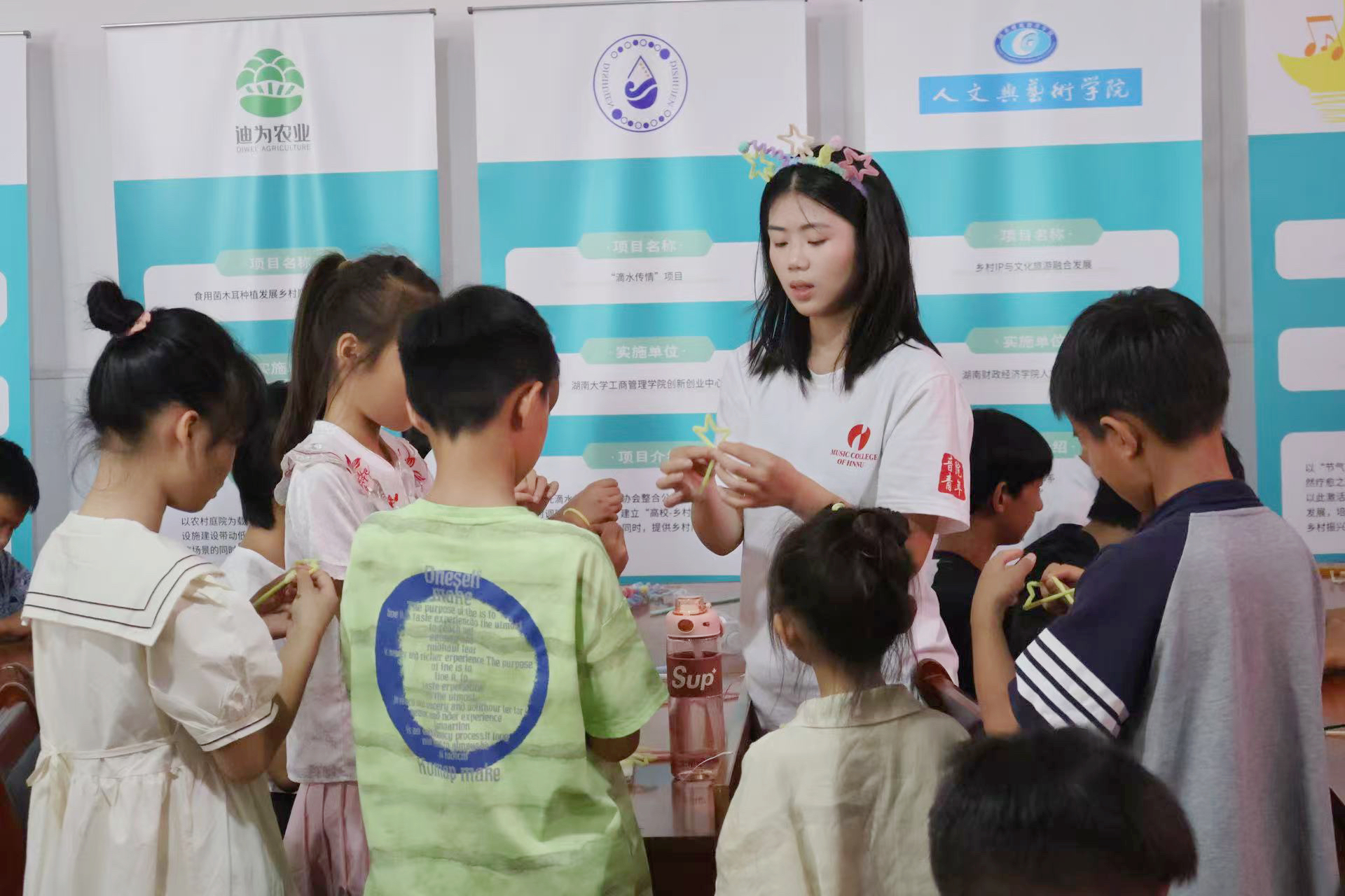 (通讯员 毛端 唐安雅 费亦涵)为丰富乡村孩子的暑期生活,让艺术之美滋养心灵,yl23455永利集团“乐见长湖”暑期社会实践团在长湖村村支两委与湖南农道基金会的支持下,秉持“以美育人”的理念开始授课。目前已经分舞蹈、器乐、朗诵、合唱、手工五个组别按计划有序教学九天,老师教学投入专注,学生学习积极主动,课堂氛围十分活跃。