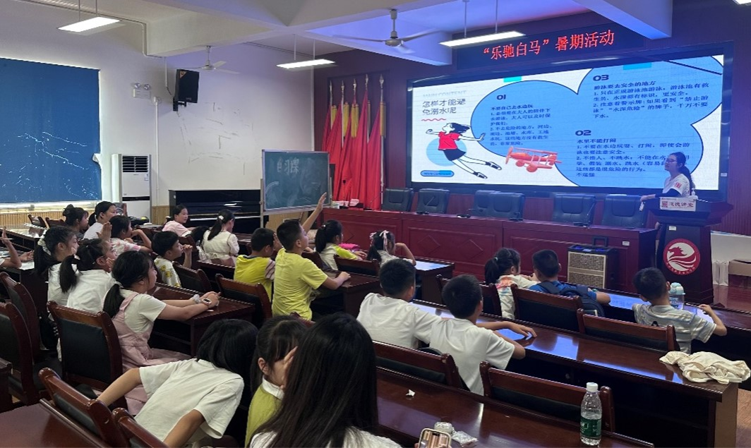 防溺水安全教育是守护青少年生命安全的坚实屏障。此次讲座暑期实践团以专业实用的知识体系和互动体验的教学方式,帮助白马街道的孩子们建立起全面的防溺水安全知识体系,是送给孩子们的一份 “暑期安全礼”,为这个暑期增添一份安心与保障,用一堂课的时间,传递守护生命的力量,愿每个孩子都能够牢记安全知识,在夏日阳光下快乐成长。