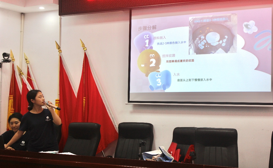 活动开始,实践团成员许安珍通过趣味提问进行课程导入,激发了孩子们对漆扇的好奇心。随后,实践团成员刘雨嫣讲述了漆扇的悠久历史和古今用途等知识,让孩子们深刻感受到传统文化的魅力。在实践环节,成员们详细演示了制作步骤并强调了安全事项。孩子们在实践团成员的指导下,完成了漆扇的制作。