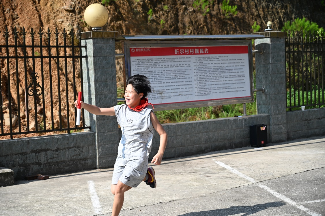 图为折尔孩子参与50米接龙团体赛