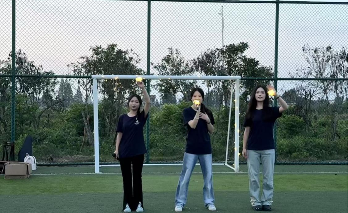 随着一声清脆的呼喝,由实践团成员伍满斌带来的武术《惊鸿》率先登场,在武术动作的腾挪跳跃间,拳脚带起的风仿佛掀动了夏夜,瞬间抓住了全场的目光,拉开了音乐会的序幕。歌曲《下一个天亮》旋律轻柔,实践团合唱组的成员们清亮的嗓音裹着晚风飘远,让人心里泛起暖意;《舞蹈串烧》一亮相,从轻快的步伐到舒展的动作,引得台下观众纷纷跟着拍手,现场气氛愈发热烈;器乐合奏《生生世世爱》的旋律奏响时,鼓点铿锵,琴弦激荡,激昂的旋律层层递进,将音乐会推向高潮。同时,实践团成员们还表演了舞蹈《You and me》、器乐合奏《太聪明》、歌曲《开往早晨的午夜》等节目。