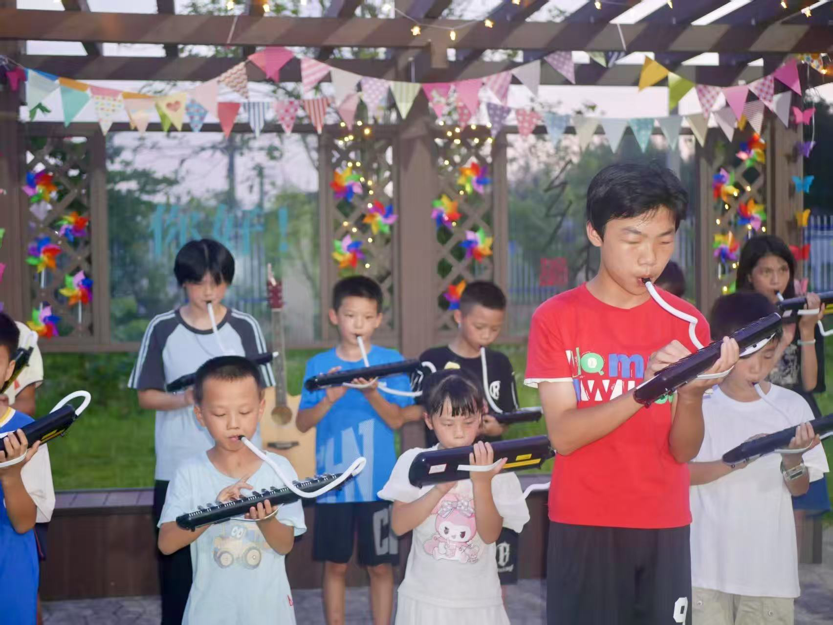 孩子们吹奏口风琴