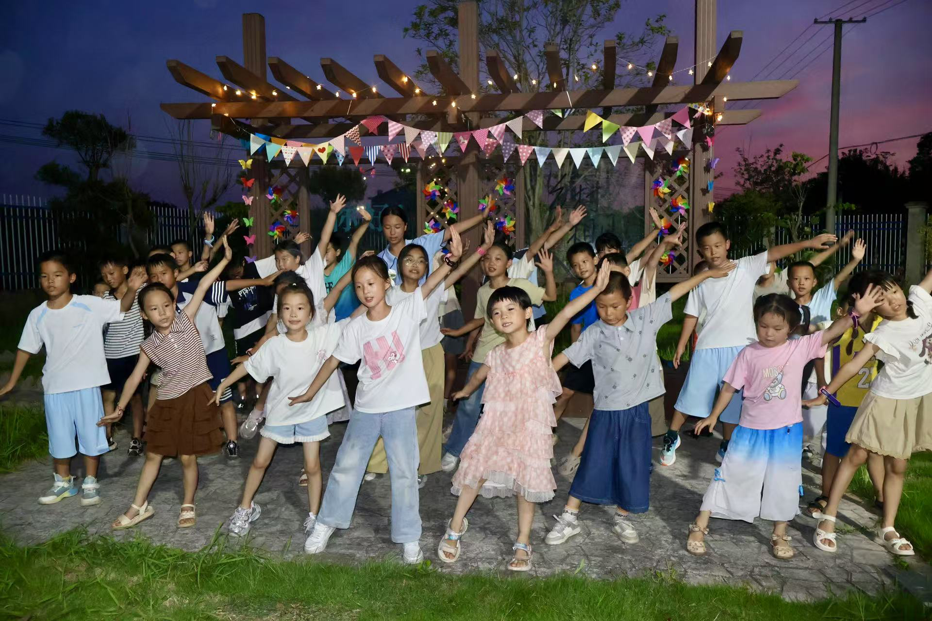 (通讯员 唐安雅 张宇辰 卢奕乔)2025年7月16日晚,yl23455永利集团“乐见长湖”暑期社会实践团携手孩子们,在长湖村相见小院举办了一场热闹非凡的“仲夏音乐会”。这场音乐会旨在以灵动的歌声与活泼的舞姿,为长湖村的夏夜带来温暖与活力。