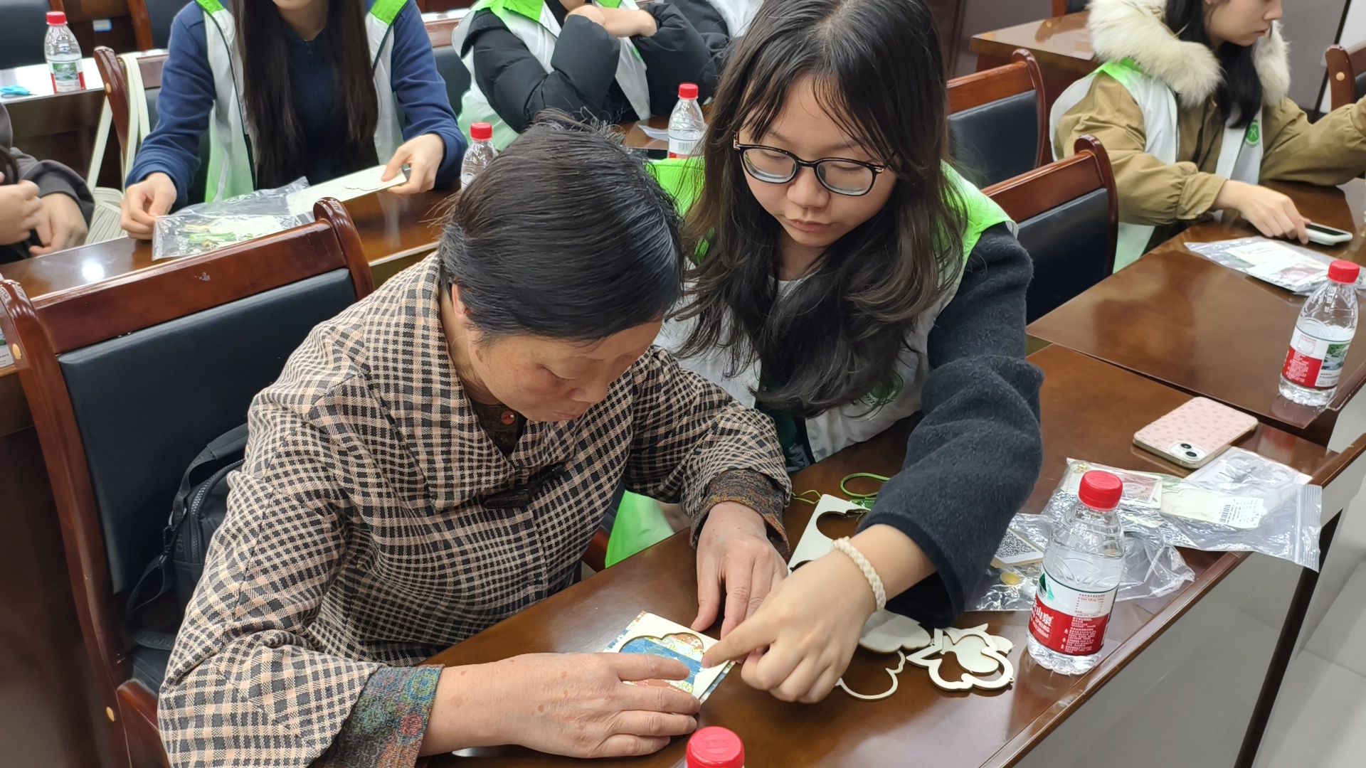 志愿者给老人们进行一对一指导