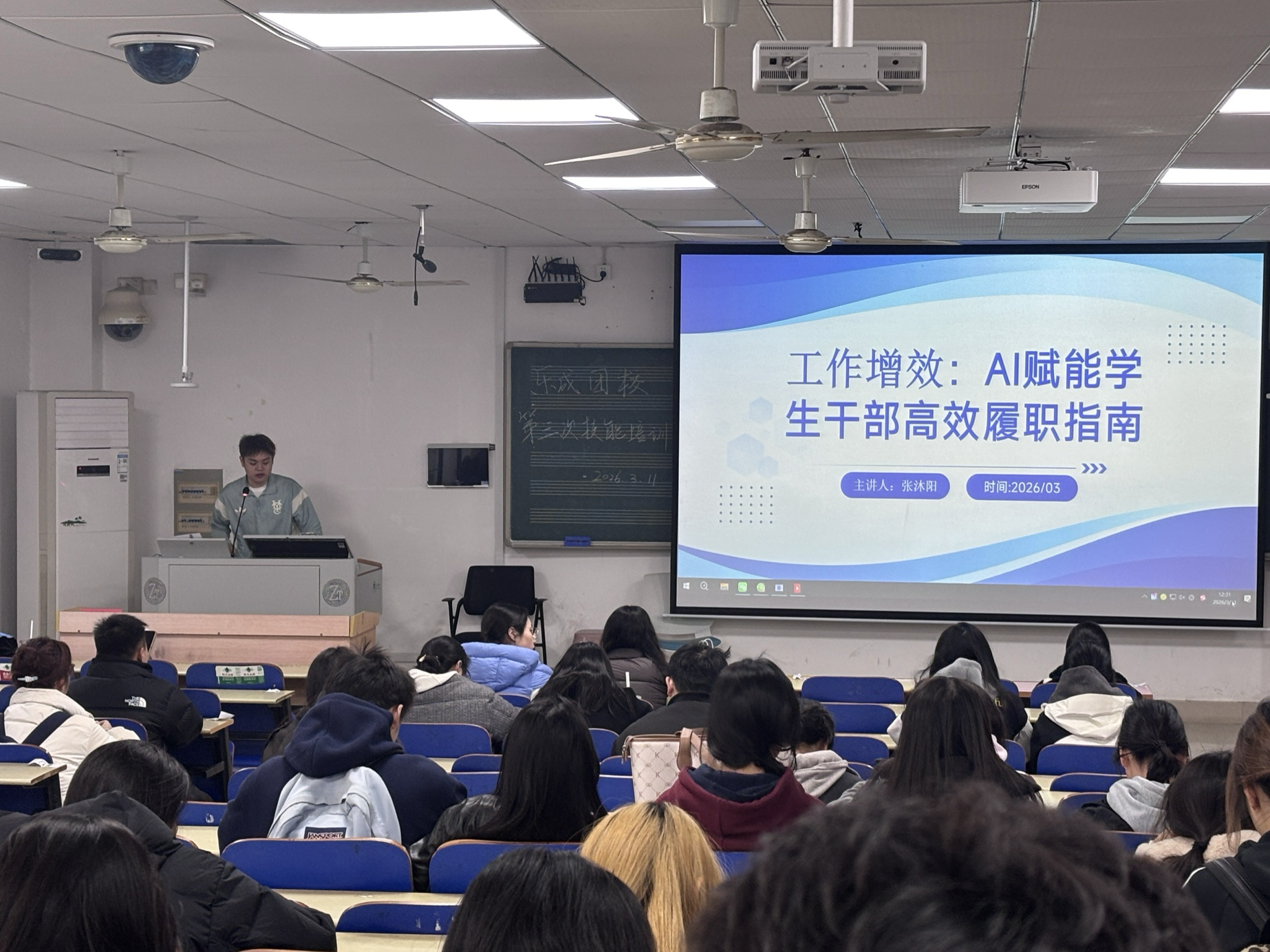 张沐阳以“工作增效:AI赋能学生干部高效履职指南”为主题,结合学院永利集团实际展开讲解与演示。他聚焦学生干部工作中的常见难题,深入剖析传统办公模式中“重复多,效率低”的痛点,明确AI数字化办公的优化方向。同时,也围绕办公软件应用、宣传文稿撰写、线上协同办公等内容展开教学,现场分享多项高效工具与操作方法。课程最后,他结合培养学生干部执行力的实用方法,引导大家搭建高效的个人工作体系。他强调,AI是提效的重要辅助工具,能帮大家从繁琐的重复性事务中抽身,把更多精力投入创意策划、沟通协调等核心工作;但也必须严守版权合规底线,始终保持独立思考,坚守学生干部的责任担当。