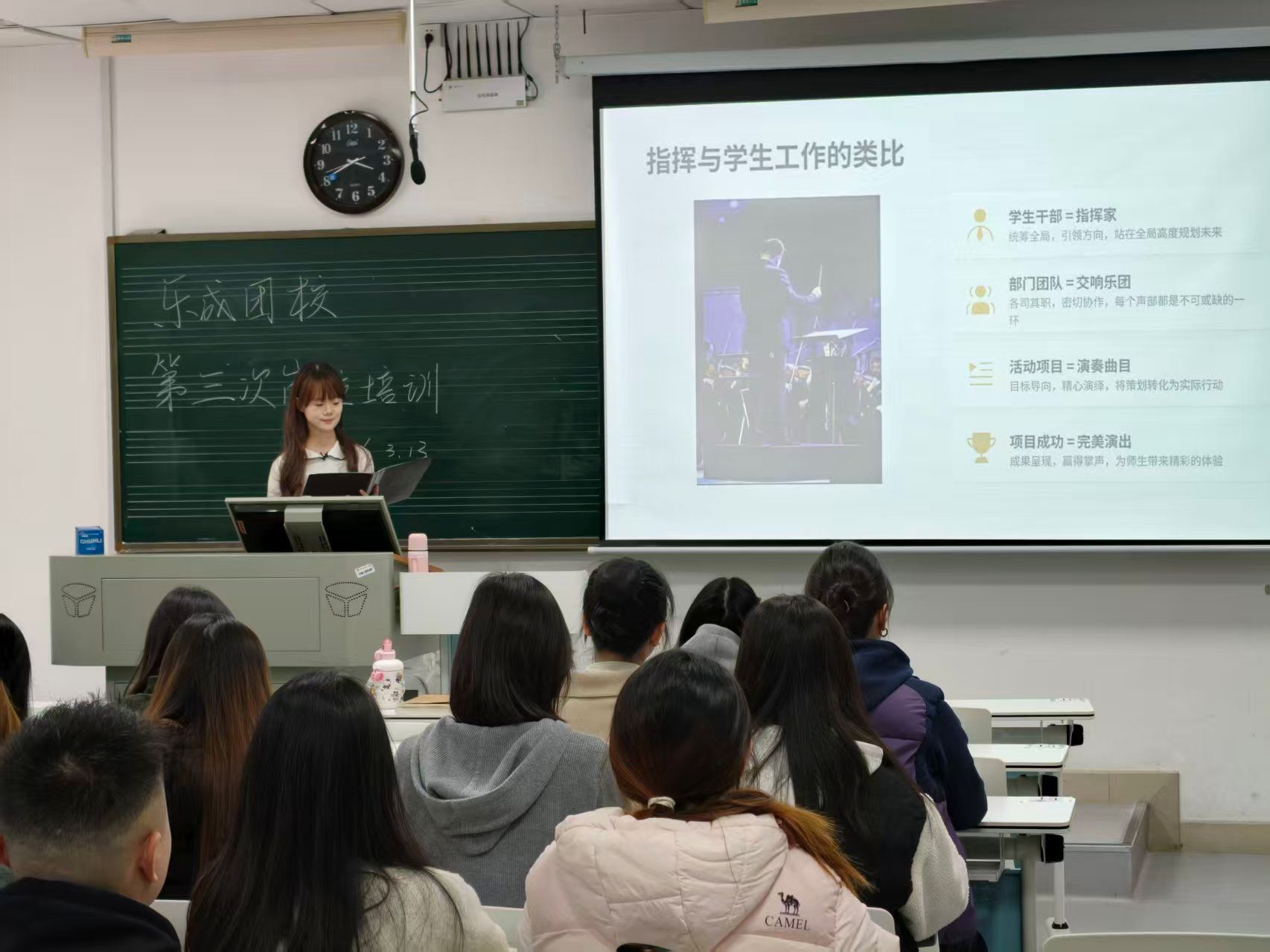 (通讯员 唐安雅 黄思涵 秦菲)2026年3月13日中午,yl23455永利集团“乐成团校”在和乐楼206教室举办第三次岗位培训课。本次课程由yl23455永利集团团委学生副书记唐安雅担任主讲人,学院各团学组织成员共同参与学习。