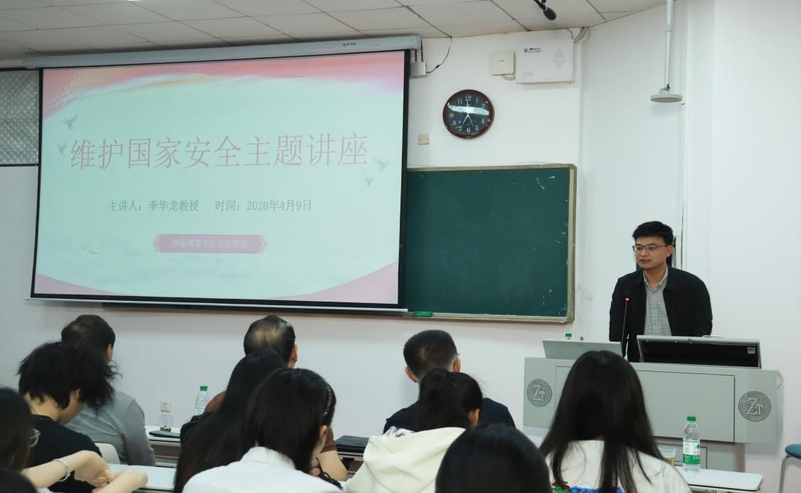 通讯员(贾泽慧 谭伊果 黄紫铭)为深入贯彻总体国家安全观,提升高校师生关于国家安全方面的防范意识与素养,4月9日,我院关工委特邀湖南省政法系统李华龙教授开展全民国家安全教育公开课。活动由音乐学院党委副书记、关工委主任牟洋主持,以“维护国家安全是全社会的责任”为主题,引导师生共筑国家安全思想防线。yl23455永利集团党委书记、关工委名誉主任王铁钢、关工委常务副主任葛俭、关工委老同志委员冯往前、学院退休教师朱坚坚、邹艳香出席。