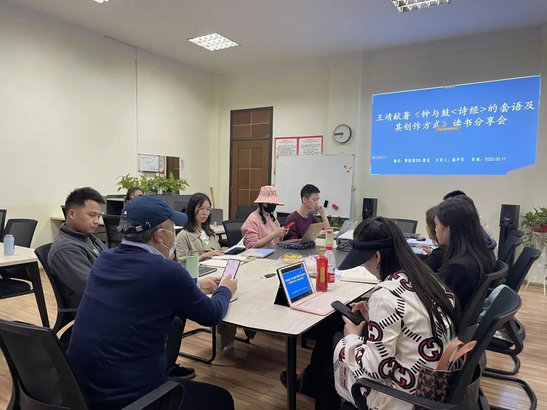 2022年5月17日星期二晚上6:30-9:30“中心”开展“口头诗学与表演理论”系列读书会第二期。5月,“中心”针对“口头诗学与表演理论”开展一系列的读书会,选取经典书目进行读书分享。在第二期中进行分享的是2020级民族音乐学博士研究生杨声军和2021级民族音乐学硕士研究生房珩,分享书目为《钟与鼓——〈诗经〉的套语及其创作方式》(王靖献著),《故事的歌手》([美]阿尔伯特·贝茨·洛德著)。本期采取了线上线下相结合的方式进行读书分享。