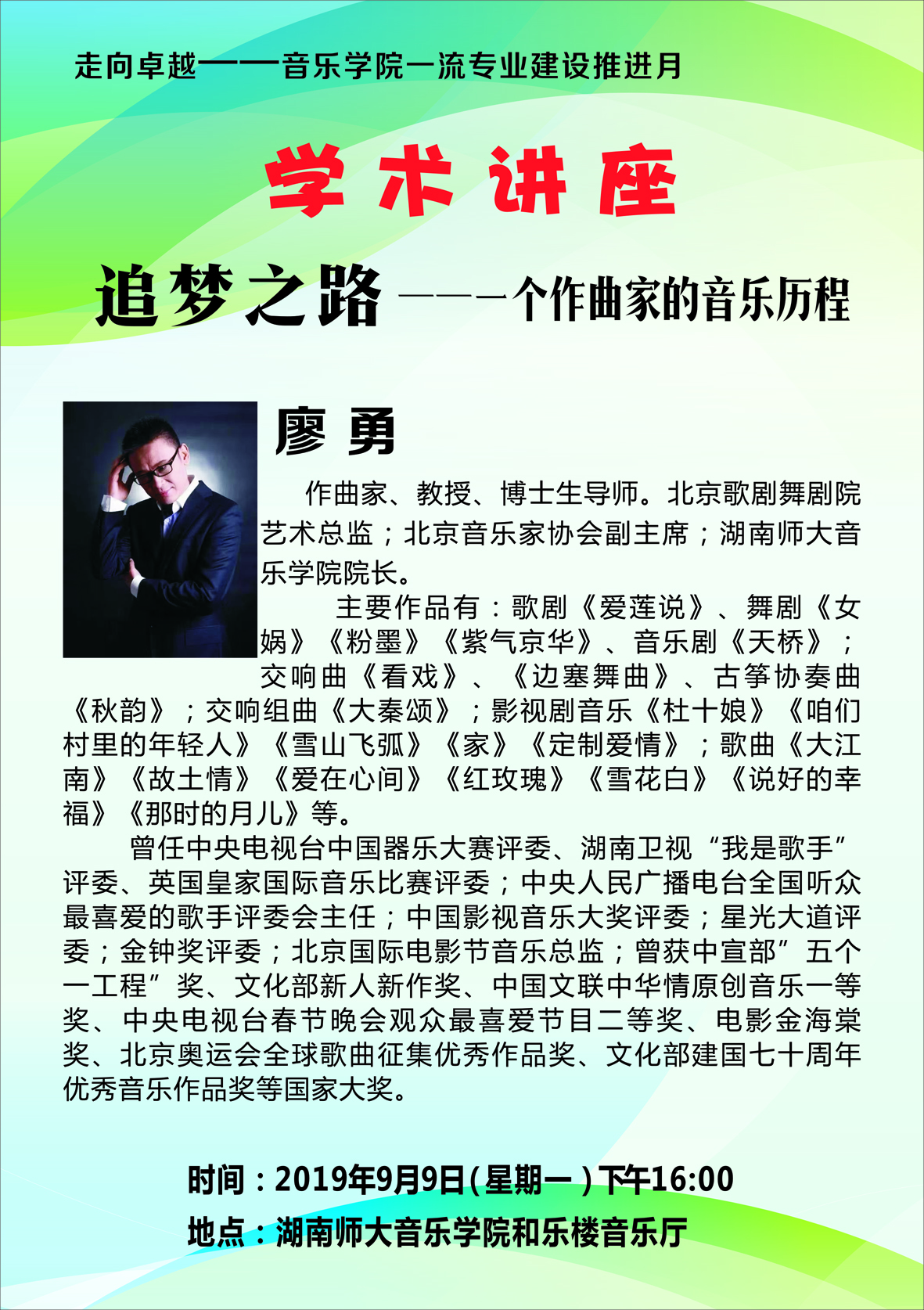 《追梦之路--一个作曲家的音乐历程》院长廖勇学术讲座