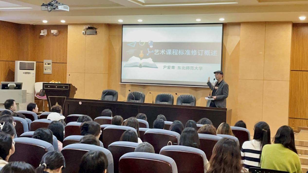 尹爱青教授围绕2022年义务教育艺术课程标准的修订背景、修订原则、修订特点和修订变化四大点,对当下学校音乐课堂教学进行分析。一是介绍2022版新课标的修订背景,明确新课程标准是根据党的十九大要求而进行调整;二是提出新课标的修订原则要坚持三个导向,即坚持目标导向、坚持问题导向、坚持创新导向;三是修订特点,尹爱青教授认为要明确时代新人培养的具体要求,学校音乐教育不是培养音乐家的教育,是培养人的教育,作为未来音乐教师需深知自身承担的责任和使命,充分发挥音乐课独特的育人价值,培养有理想、有本领、有担当的时代新人;四是尹爱青教授提出新课标的修订变化,并通过两个音乐课堂实例分析与在场师生一起探讨教学问题,启发在座各位思考。