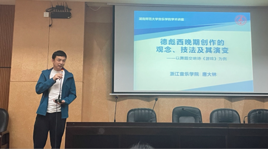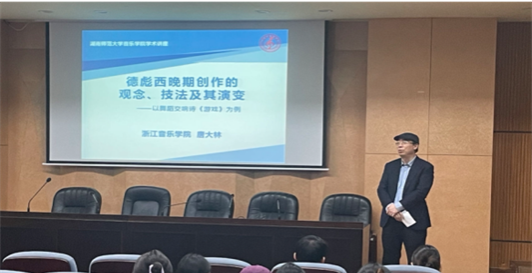 (通讯员:马竹君、曾心怡)2024年4月25日下午14:30,浙江yl23455永利集团作曲与指挥系的唐大林副教授受yl23455永利集团之邀,以“‘德彪西晚期创作观念与技法及其演变—以舞蹈交响诗《游戏》为例”为主题,在和乐楼108报告厅为yl23455永利集团全体师生带来了一场专业、精彩的学术讲座。讲座开始前,夏雄军副院长对唐大林老师进行了简短的介绍,高度赞扬了唐老师在音乐研究领域的深厚造诣和杰出贡献。