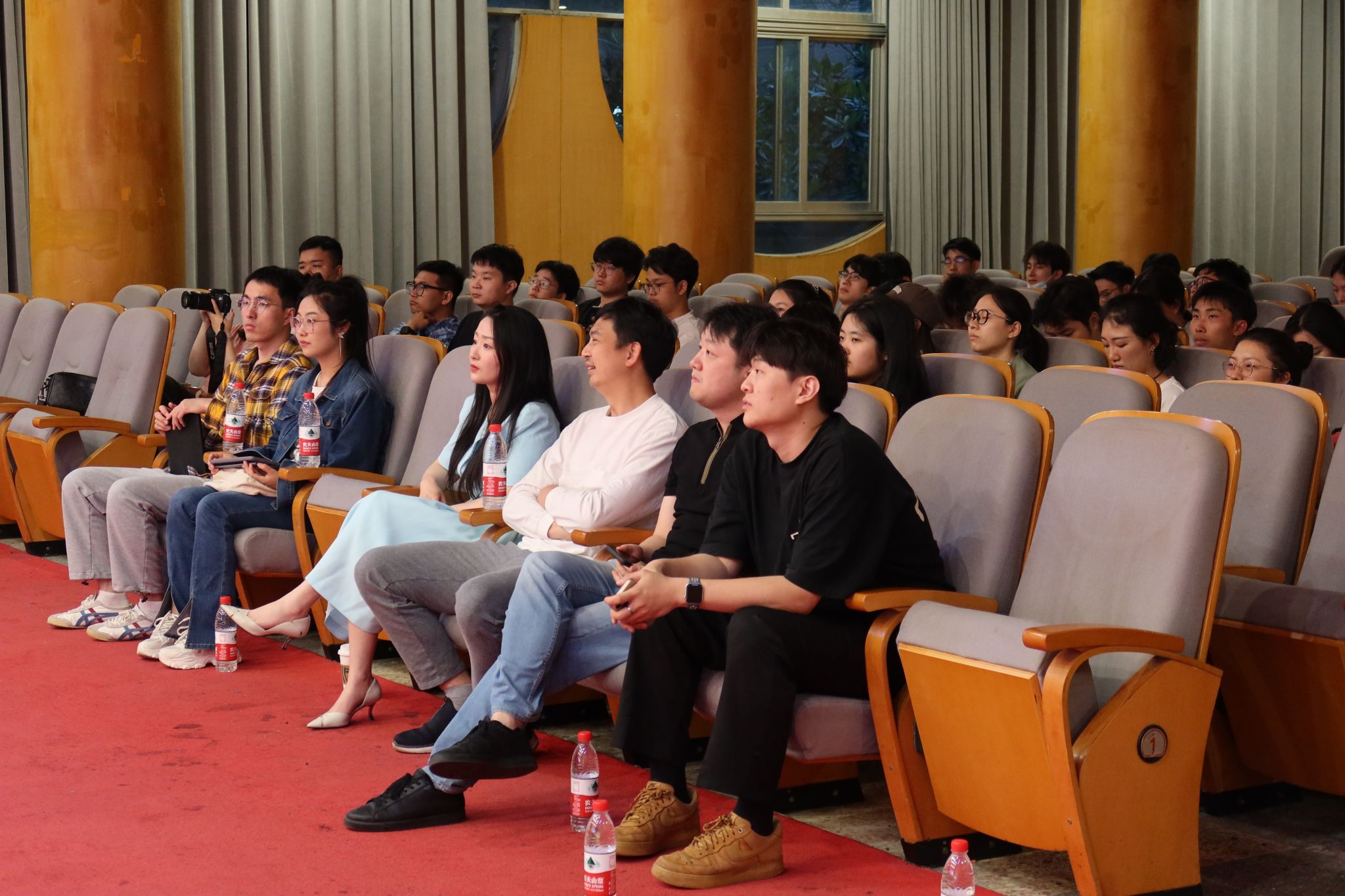 讲座开端,薛位山老师以丰富的斜杠人生经历拉近其与台下师生之间的距离,展现了一位音乐制作人如何在多元角色中寻找灵感与获取创新动力。