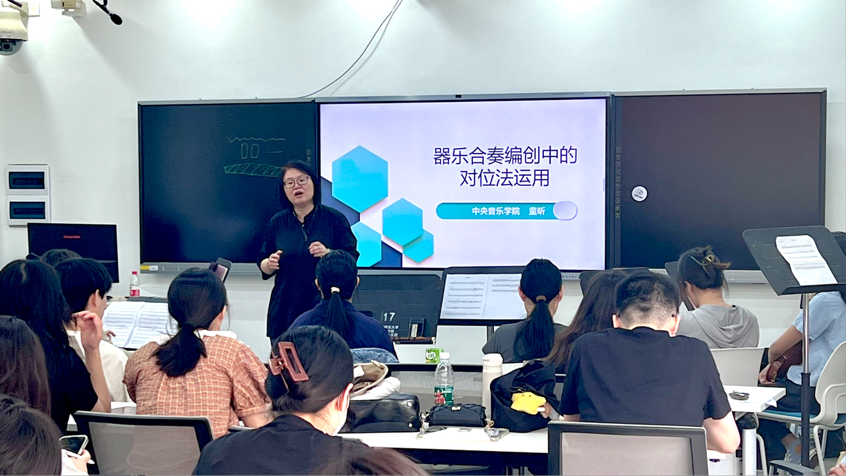 (通讯员:黄雨晴)5月23日上午,中央学院博士研究生导师童昕教授来我院专场系列讲座“艺术硕士音乐教育方向协作课程之“器乐合奏创编中的对位法应用”在我院和乐楼二楼智慧教室举行。学院教师、博士生、研究生一起聆听学习,讲座由学院器乐系系主任陈果教授主持。