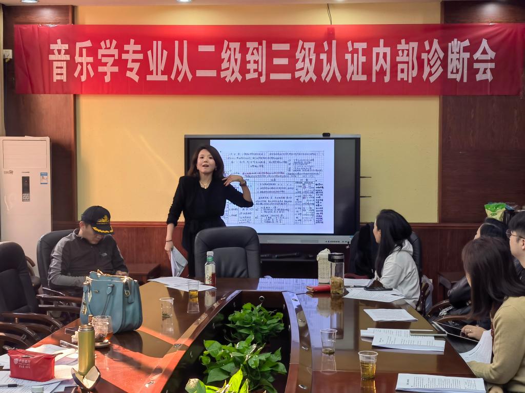 (通讯员 杨婉娴 雷鸣婵)11月18日下午,我院音乐学专业从二级到三级认证内部诊断会在德乐楼会议室召开。学院相关负责领导、系主任、师范认证核心课程负责人以及教务办相关老师出席本次会议。会议由学院教学副院长资利萍主持。
