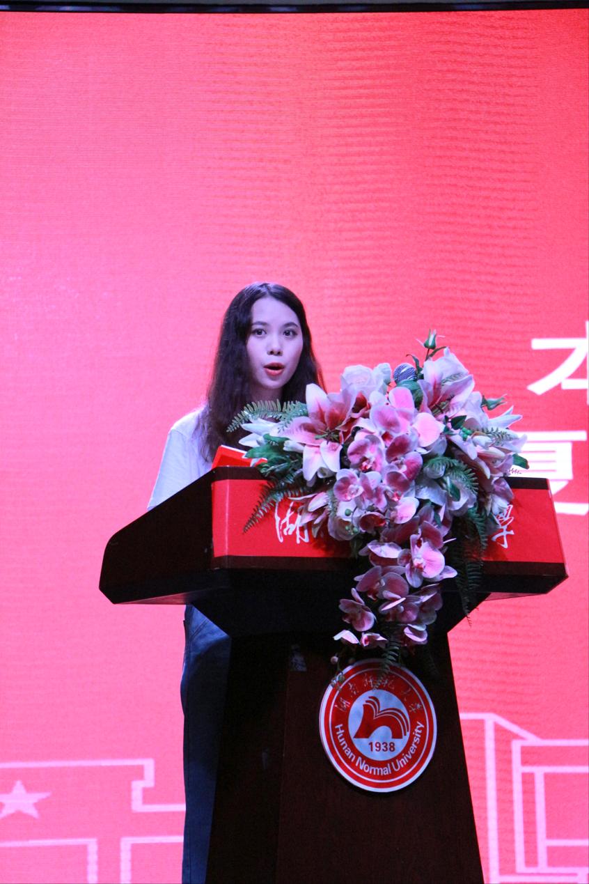 西方音乐史方向硕士生导师、青年教师谌蕾作为教师代表发言。她结合自身经历向新生提出了两点建议:一是希望新生们秉承仁爱精勤的校训,树立远大理想,规划好大学四年时光。二是期待新生们牢记习近平总书记“惟楚有材,于斯为盛”的嘱托,紧跟时代,为发展音乐艺术不断努力。